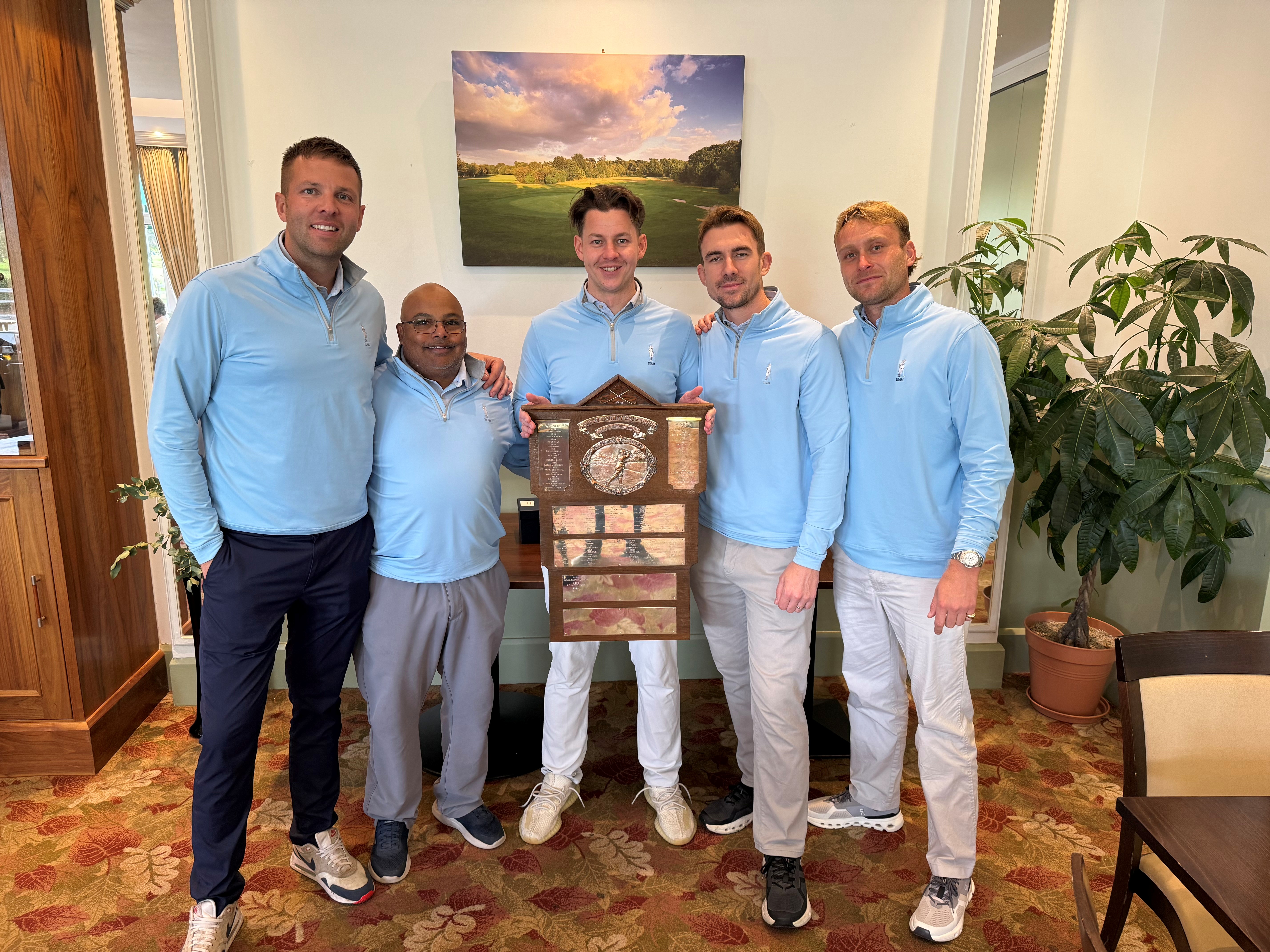 The Surrey Fives Final was contested by Roehampton and Foxhills with 5 players a side with handicaps ranging from 5 to 18. On paper the teams were very evenly matched and every match was closely fought but Foxhills emerged as winners by 4 games to 1.