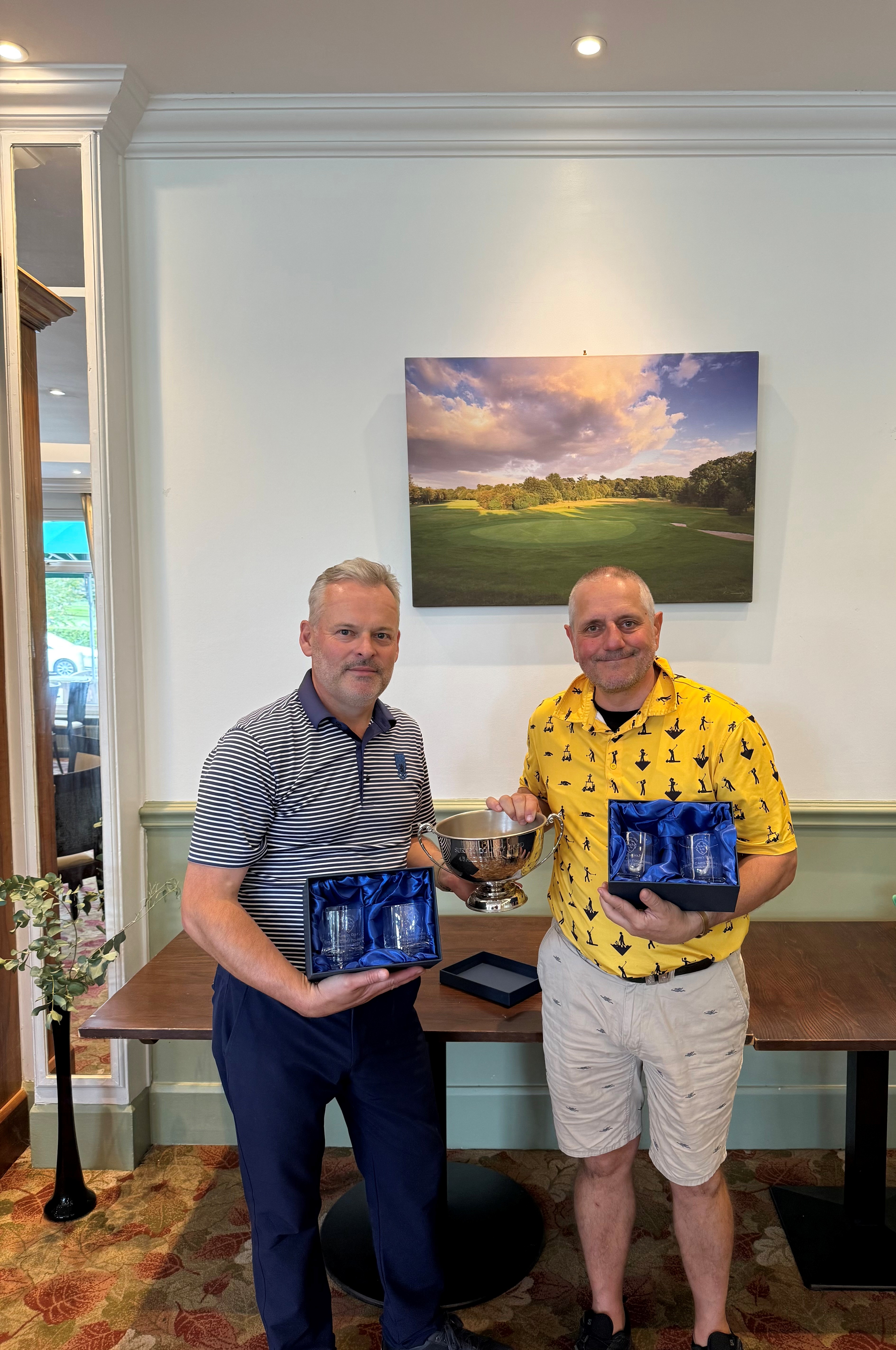 First up was the County Card Foursomes Final played by Vic Tokarski and Alex Beal of Purley Downs against Greg van Heerden and Alan Samuel of The Drift. In what was a really well natured match it was the men from Purley Downs who prevailed as winners by a margin of 4&3.